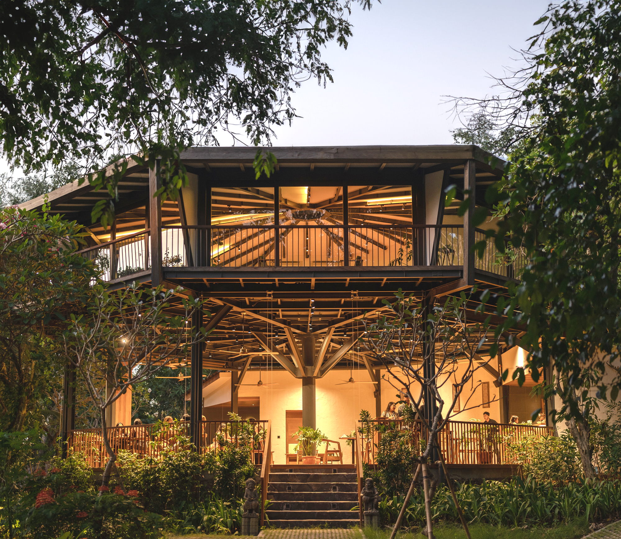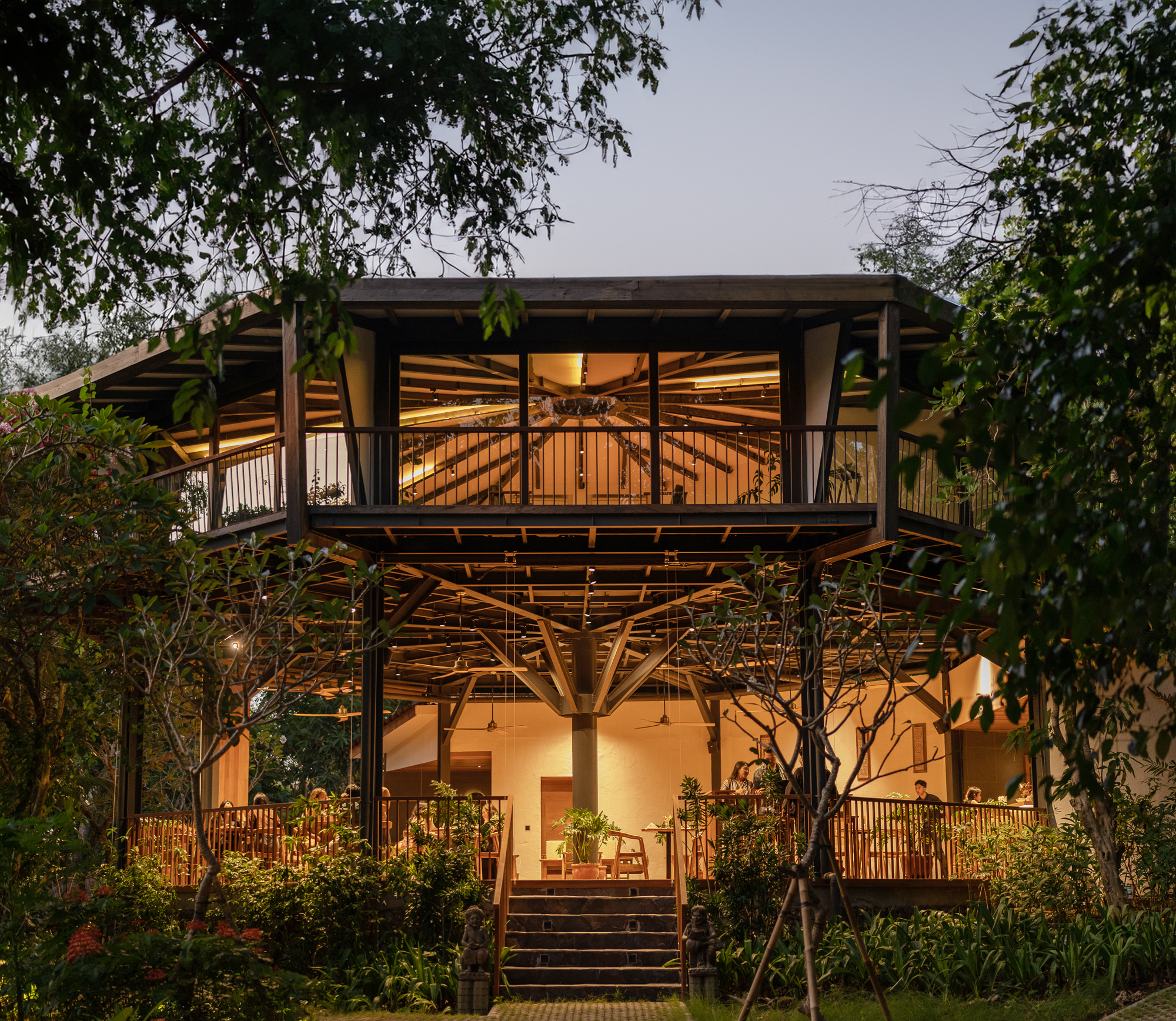 The Octagon is a stunning two-story Tree-house reserved exclusively for retreat gatherings. Surrounded by lush greenery, it offers a private, nourishing space where participants can come together to experience study and social time. More than a trainings venue, the Octagon becomes a hub of connection and community, enhancing the retreat experience with shared conversations and soulful nourishment.