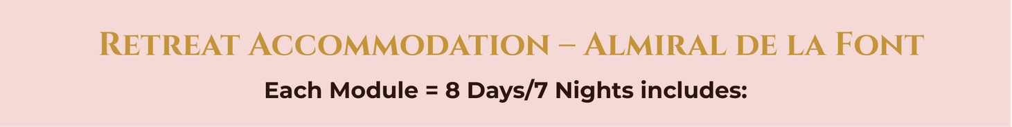 Set in the hills just outside Barcelona at Almiral de la Font, the location offers both tranquility and inspiration. Surrounded by nature and overlooking the Mediterranean region, it provides the perfect setting to step away from everyday life and focus deeply on your growth, purpose, and the sacred work of Love.