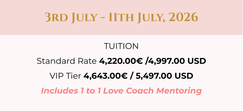Because this 8-day retreat could change everything, opening the door to deeper connection, personal transformation, and the unfolding of new passions—whether in love, life, or a future path as a Love Coach.